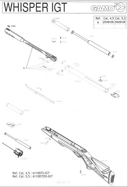 He desmontado mi gamo Whisper IGT para limpiarla, se ha caido una pequeña pieza de plastico, en el plano es la marcada con el numero de referencia 16080. No se donde C........s va. El caso es que sin ella, al quebrar la carabina, la biela toca la carcasa de plastico y es imposible montarla.