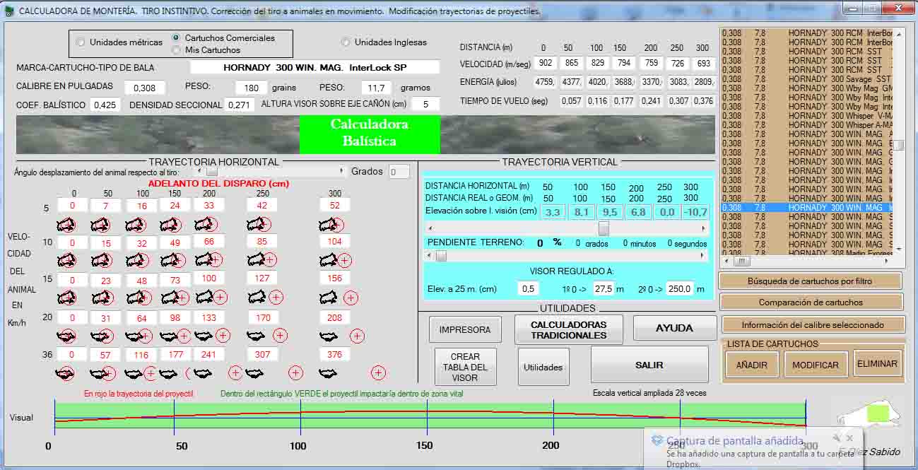 Alguien tiene la tabla de balistica de la municion hornady custon 180 gr sp interlock en calibre 300 wm es para poner el rifle a tiro y hacer 0 a 250 m y saber la variacion de la bala a 50 100 150 200 y 300 m ya que en la pagina oficial de la marca no soy capaz de hacerlo a causa de mi pesimo ingles.Ya se que es una puesta a tiro un poco larga pero sabiendo lo que sube o vaja a esas distancias ya me hago mis calculos.