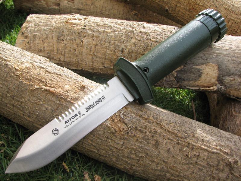 No soy muy partidario del este tipo de cuchillos, pero ando desesperado por un Jungle King y mi cuchilleria habitual solo lo trae en negro. Cosa que me disgusta y le tengo dicho que en cuando le llegen me llame....
