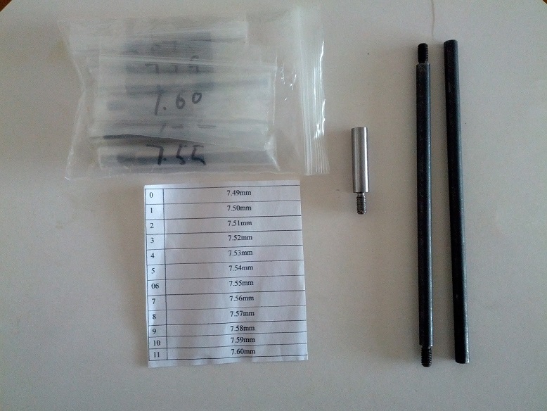 Juego de 12 galgas para comprobar el desgaste del cañón incluye dos varillas de 15 cm. de largo que se unen, hay que complementar ese largo con una baqueta. Doy instrucciones precisas para saber si el arma tuvo mucho, medio o poco uso, dependiendo que galgas pasan y cuáles no. 60€. VENDIDO