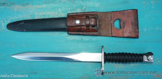 Machete bayoneta, estado impecable y con tahalí incluido. 140€.
