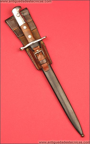 El tahalí es el correspondiente al modelo de la bayoneta : Modelo 1918, con broche de hebilla.