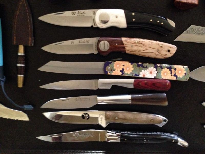 hola . el de la segunda foto , abajo , con seguro , cacha marron y hoja con el angulo de la punta al reves , ( no se si me explico ? ) , pues ese me gusta !!! . bonitos y utiles todos , aunque desde que las leyes , estan como estan ! , yo he vendido casi todos , incluidos hachas de campo . los que uso , ( para bocatas y demas ) , los tengo capados , vamos que los corto la punta y punto ! , otros regale y otros tire al bendito rio ebro . que es un cuchillo , si no puedes disfrutarlo sin miedo a una sancion , si me da asta miedo , llevar mi machete y hocetas para desbrozar a la finca ..... suerte !!!