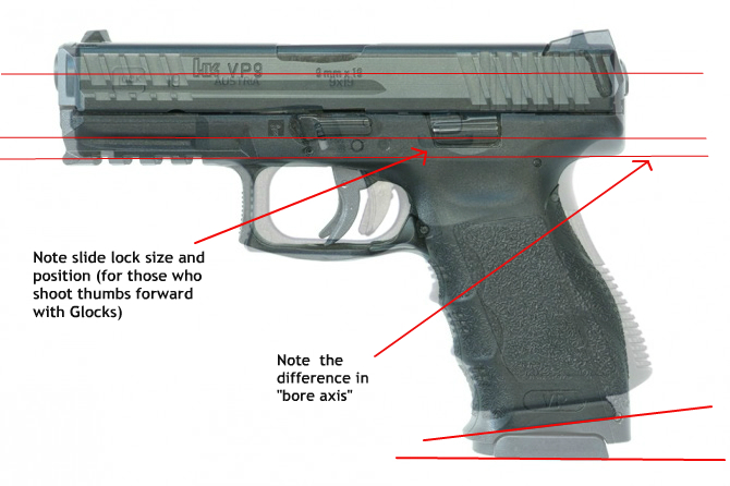 La comparación que muchos van a hacer. Con la Glock G17. Esta claro que el cañón queda mas bajo con Glock.