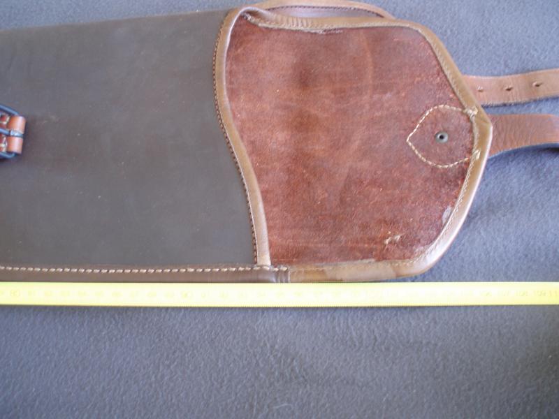 Vendo esta funda de piel para escopeta semiautomática desmontada. Hecha por encargo por Curtidos Varo, artesanos de la piel de Córdoba. Material vacuno de primera calidad. Separable mediante correas, se puede utilizar también para transportar cañones adicionales. Útil también para rifle monotiro corto sin visor, del tipo Outfitter, Bergara Scout, etc