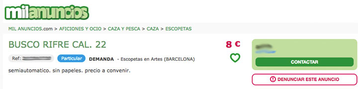 Como hemos indicado antes, esta restricción no sólo se extiende a los anuncios de particulares, sino que llega hasta las mismas armerías, que no podrán postear ningún tipo de anuncio relacionado con la venta de un arma, y mucho menos mostrando datos, precio o fotos. Sí que tendrán permitido el anunciarse como comercio especializado, mediante un enlace a una revista especializada y siempre con un anuncio genérico. Sin embargo, sitios como milanuncios.com no permiten poner enlaces externos, por lo que esta última opción también puede quedar en entredicho.