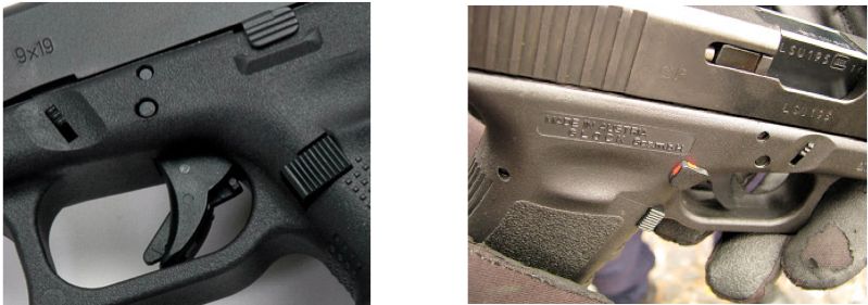 También existen diferencias entre los arcos guardamontes. En la HK es más grande, lo que facilita el uso del arma con guantes, pero en Glock este arco es algo pequeño como para hacer uso del arma con ellos puestos.