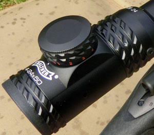 Como no podía ser de otra manera en un visor con tubo de 30mm, módulo de retícula iluminada y campana de 56mm, el principal hándicap de este modelo es su peso, ya que se sitúa en unos considerables 1130 gramos. También hay que tener en cuenta su longitud, de 42,5 cm, pero que se prolonga de forma notable si se le coloca el parasol que trae incluido de serie de 10 cm de largo. A este respecto, hay que destacar que todos los visores de la gama Walther PRS, excepto el modelo 1-6x24, incluyen de serie su propio parasol de diferentes tamaños, así como su propio juego de anillas de aluminio para carriles de ancho Weaver y un práctica funda de neopreno para transportar bien protegido nuestro visor (estos dos últimos accesorios sí que están presentes en los seis modelos de la gama).